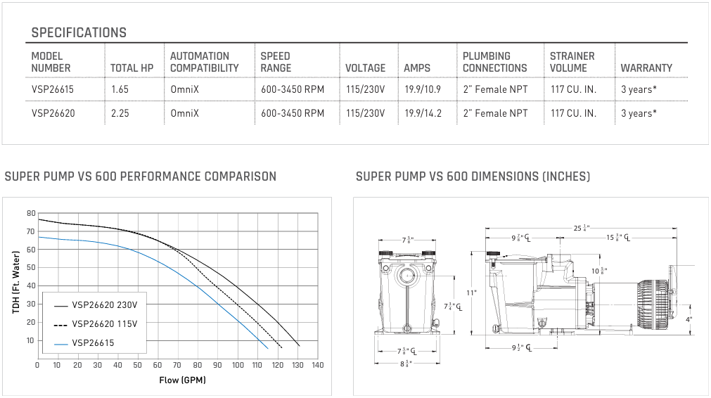 View other product documentation for Hayward Super Pump VS 615 1.65HP Variable Speed Pump w/ Omnix.